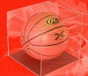 This acrylic basketball display case features a black base/ball rest and clear cover. Use this memorabilla holder to protect, store and display your collectible basketballs from the MBA, NCAA, High School and others.