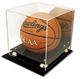 This deluxe acrylic basketball display case features a black base with gold risers, clear cover, and mirrored back. Use this memorabilla holder to protect, store and display your collectible basketballs from the MBA, NCAA, High School and others.