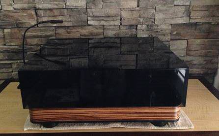 A custom Smoke Tinted 3/16" thick Floating Turntable Cover